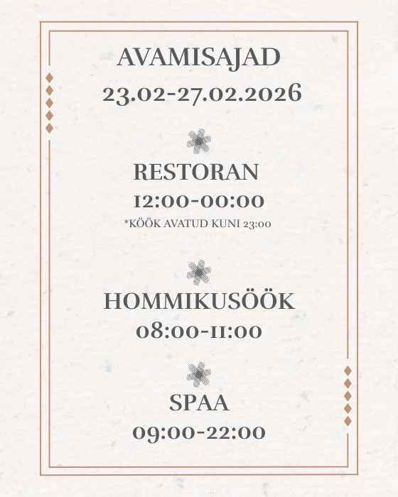 Sobib ideaalselt pika päeva lõpetamiseks oma ajaloolise atmosfääri ja sumeda valguse tõttu. Luba endale pärast meeldejäävat õhtusööki klaasike veini või konjakit ning mõtiskle möödunud päeva üle.