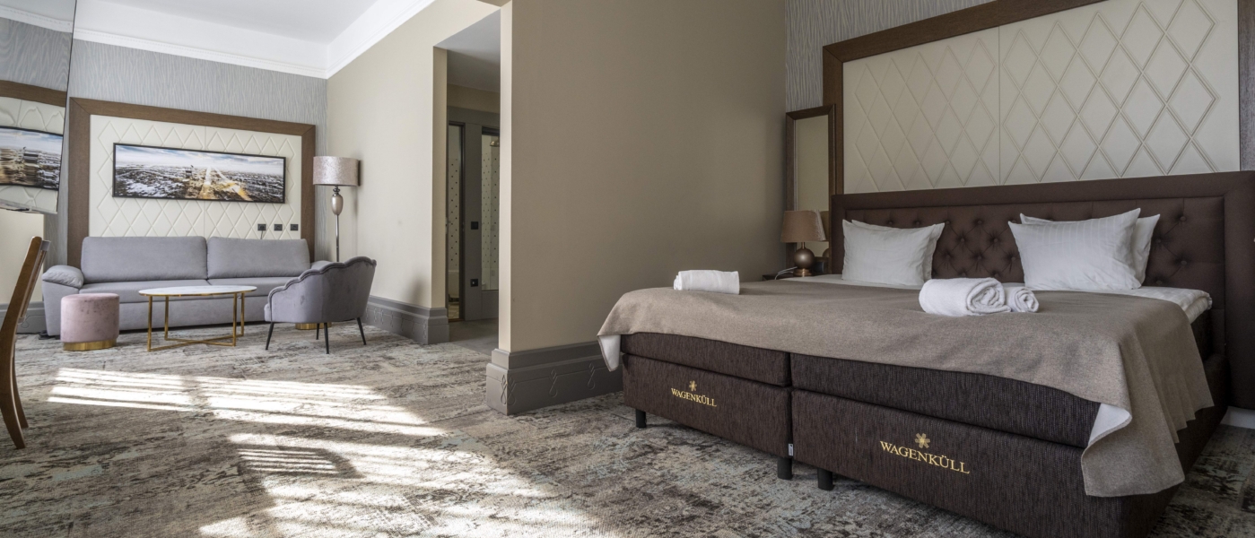 Between Wagenküll Castle and the Park House there is the historic Governor’s House (not connected to the main building), which features a period-style Deluxe room. The room is elegant and equipped with modern comforts. An ideal choice for a romantic getaway or a peaceful stay.