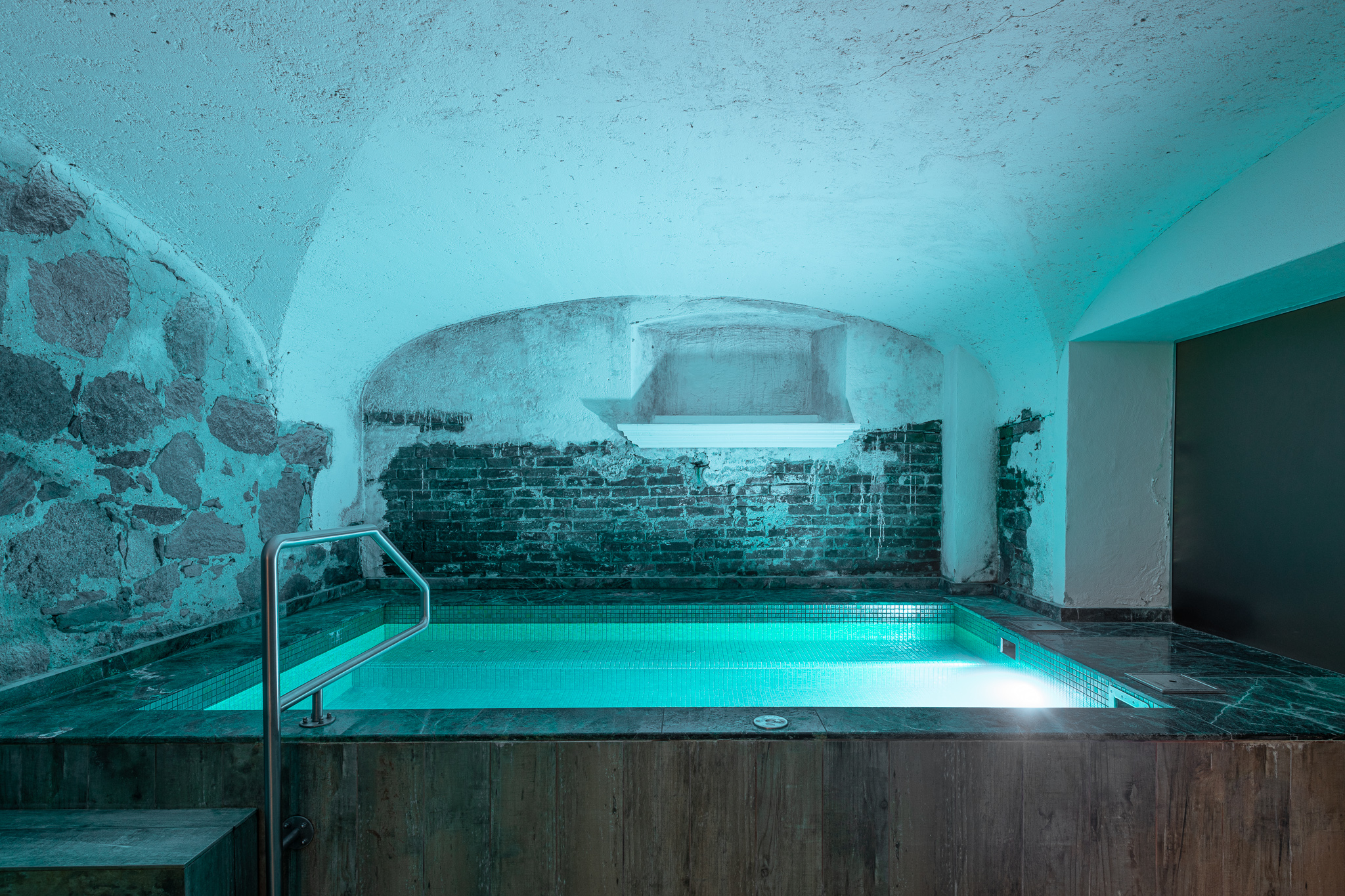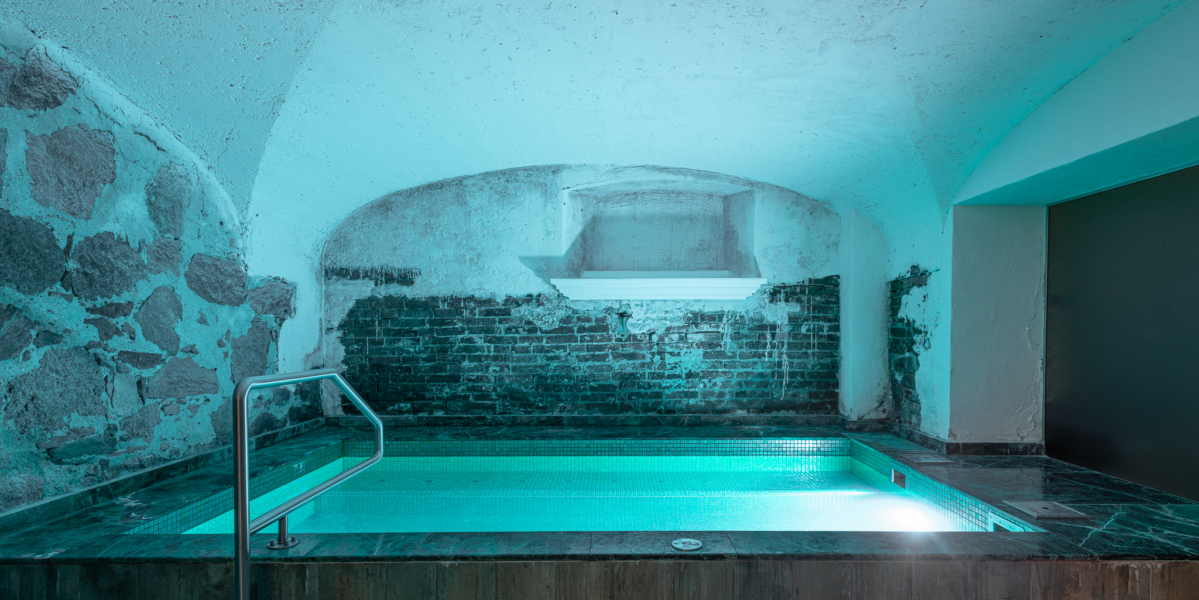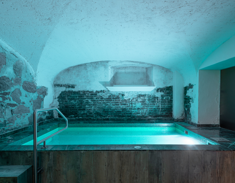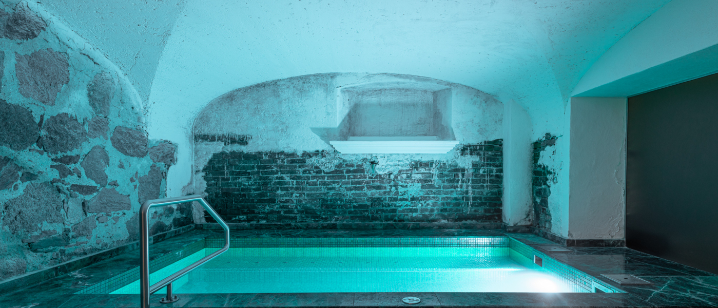Yksityisessä kylpylässä on runsaasti erilaisia rentoutusnurkauksia, joissa voi halutessaan katsella värikkäitä akvaariokaloja tai ihailla linnapuiston kauneutta.