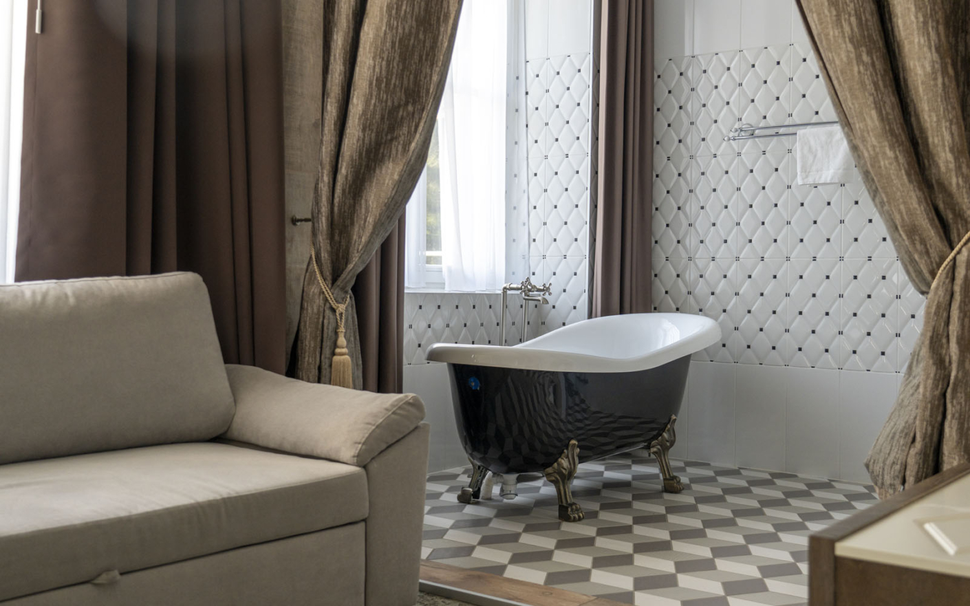- Retrostiilis vann või mullivann (sviidis Paruni Töötuba), trepiga vann (Paruni Öösviit)