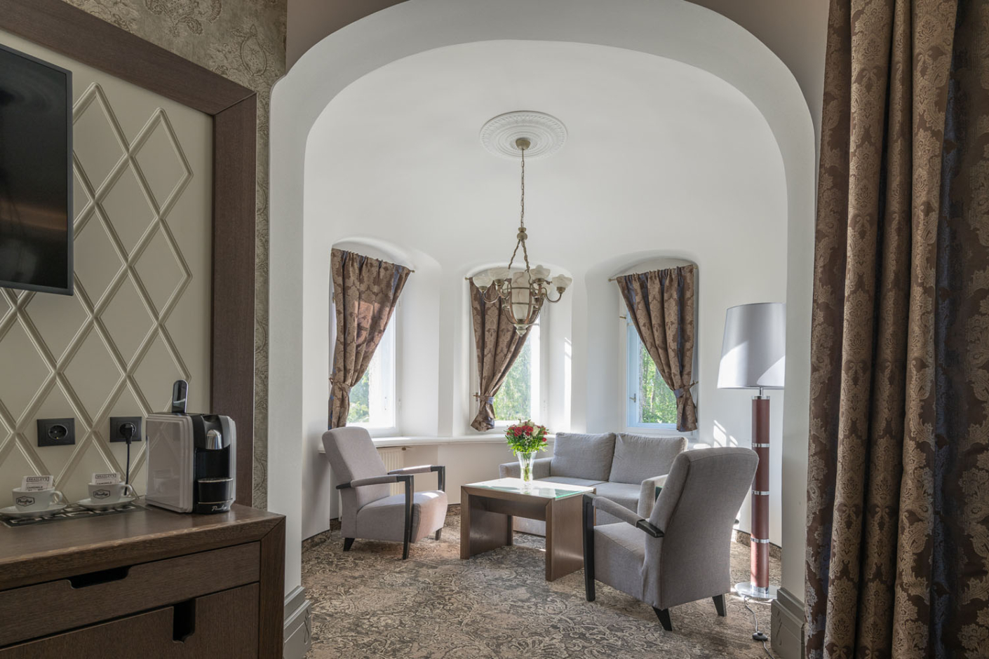 Valitsejamaja sviit koos privaatse aiaga (ei ole ühendatud peamajaga). 100-ruutmeetrine kahetoaline sviit koos köögi ja elegantse verandaga. Sviidis on retro vann ning eraldi duširuum. Restoran ning spaa- ja saunakeskus asuvad lossis. Valitsejamaja ja loss ei ole omavahel ühendatud.