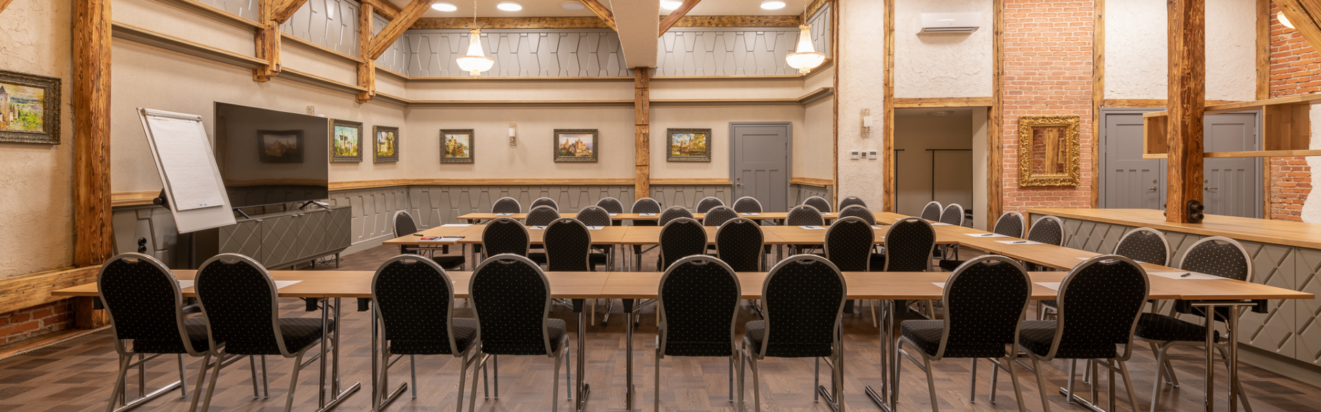 Šeit harmoniski savijas vēsturiskā pils arhitektūra un mūsdienīga funkcionalitāte, radot iedvesmojošu un reprezentablu vidi. Telpu raksturo slīpas sienas, augsti griesti ar kristāla lustrām un mājīga atmosfēra, kas atbalsta gan saturīgas diskusijas, gan neaizmirstamas tikšanās.