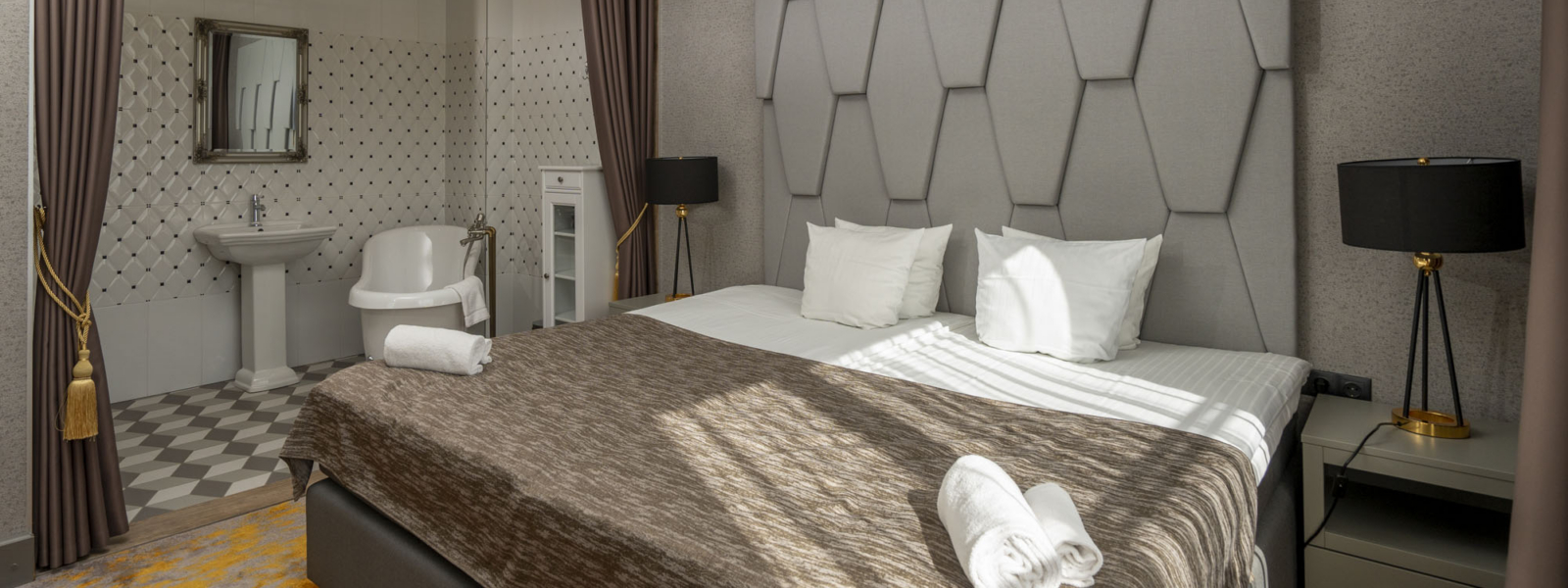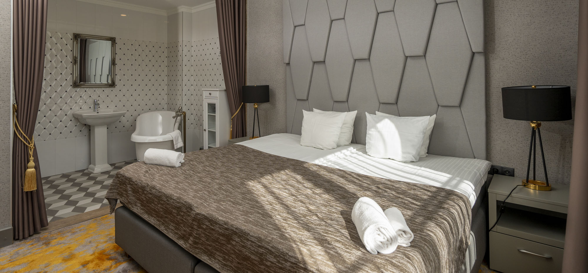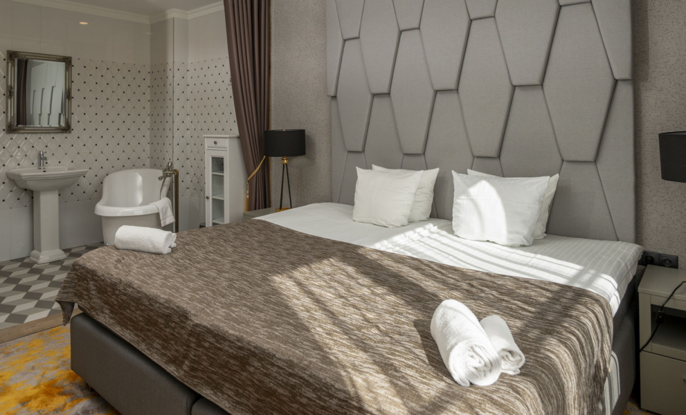 Разнообразные номера категории Делюкс расположены в замке. В большинстве номеров — открытая ванная комната в ретро-стиле с одноместной ванной и душем. Просим заранее сообщить нам о предпочтениях по номеру.