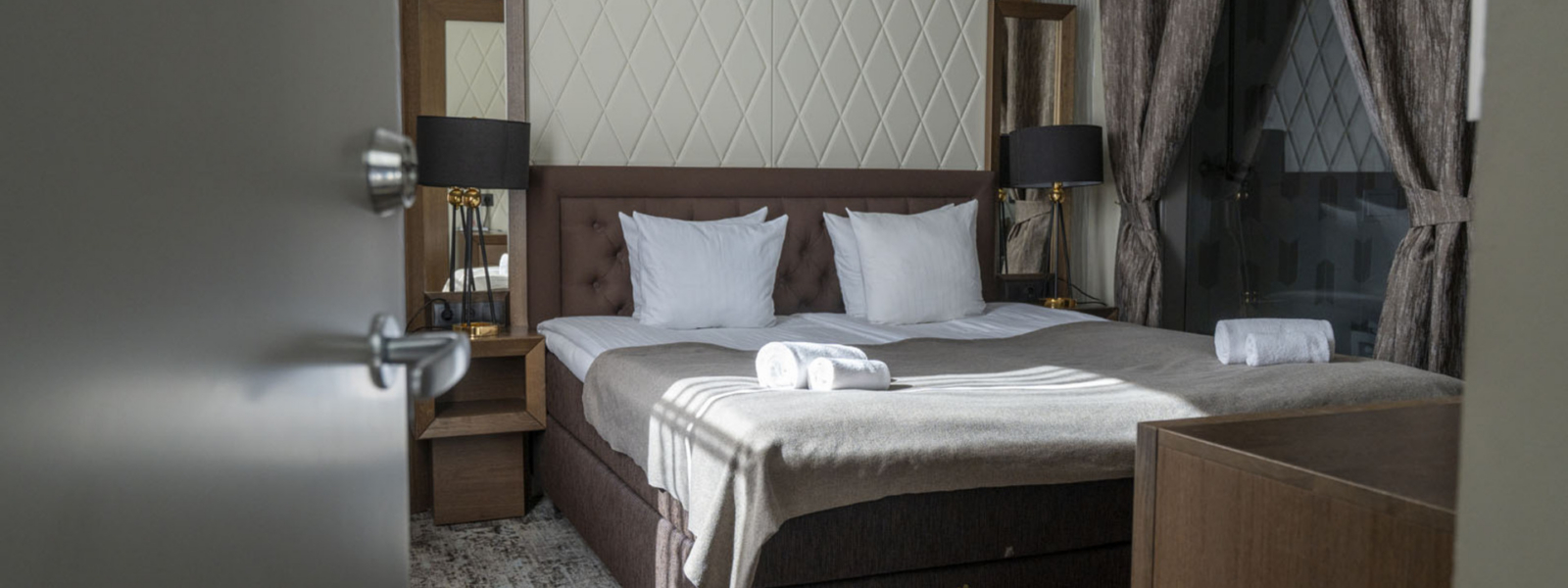 Семейный номер в Парковом доме состоит из двух смежных комнат, которые можно соединить межкомнатной дверью.