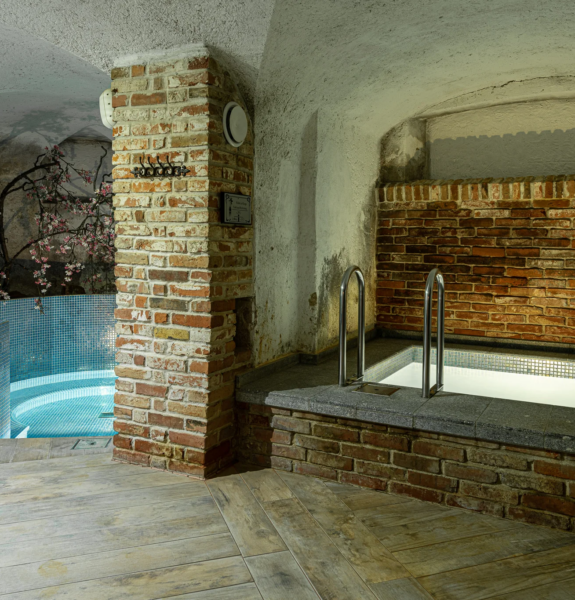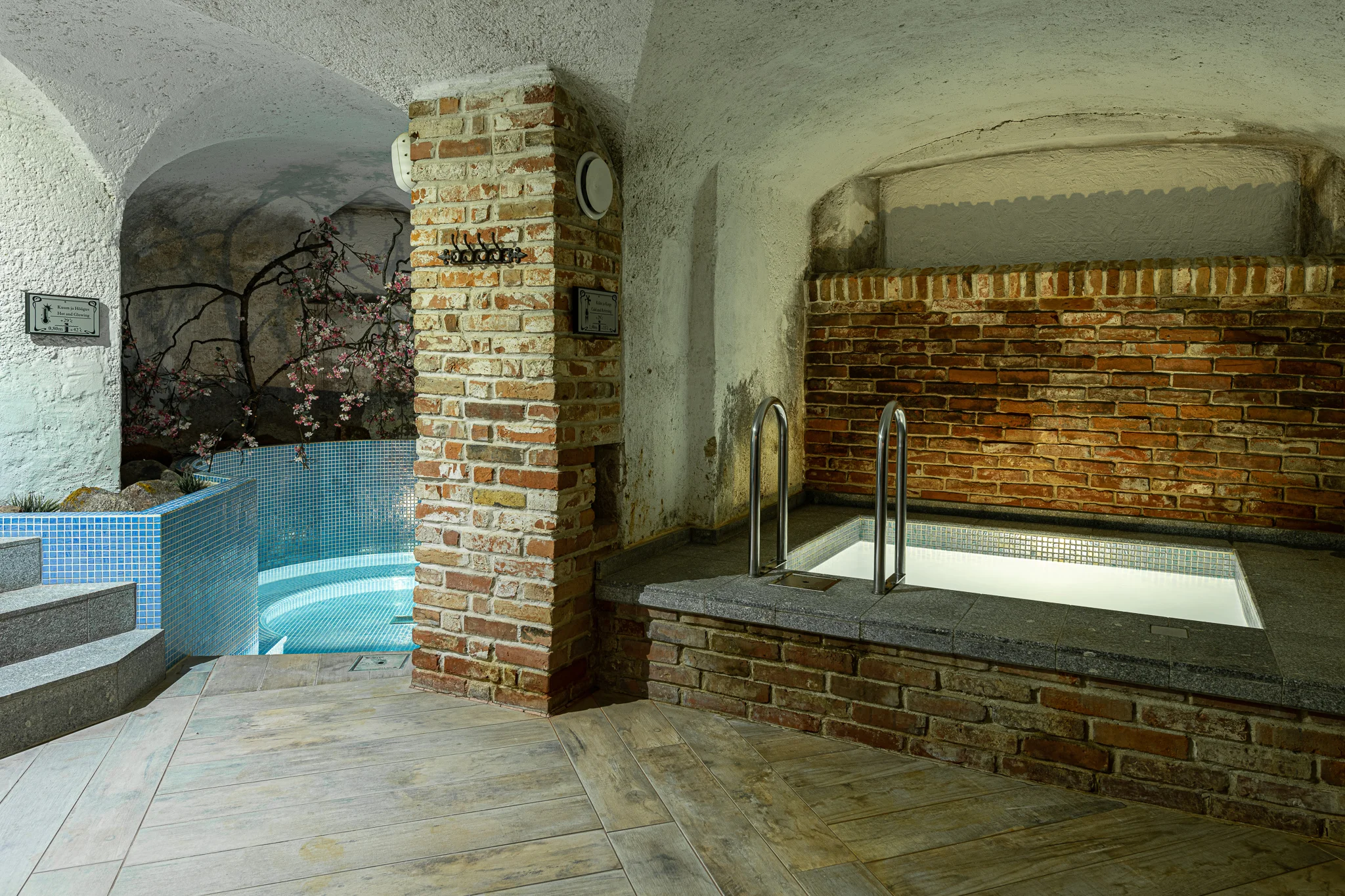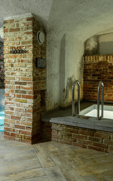 Глубокая купель с холодной водой, расположенная между японской ванной и дымовой сауной.