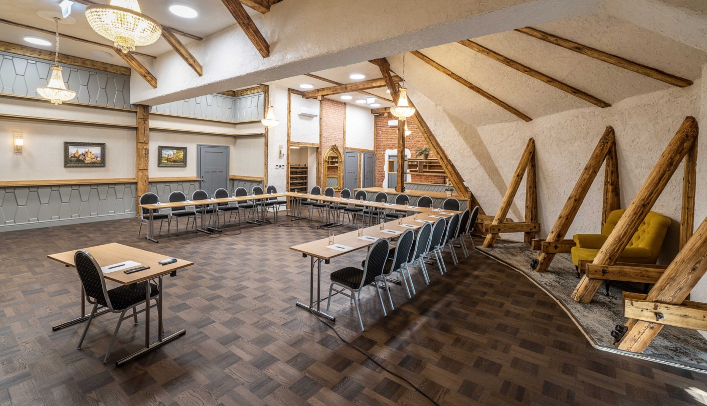 Ajalooline lossiarhitektuur ja kaasaegne funktsionaalsus põimuvad siin harmooniliselt, luues inspireeriva ja esindusliku keskkonna. Ruumi ilmestavad kaldseinad, kõrged laed kristalllühtritega ning hubane atmosfäär, mis toetab nii sisukaid arutelusid kui ka meeldejäävaid kohtumisi.